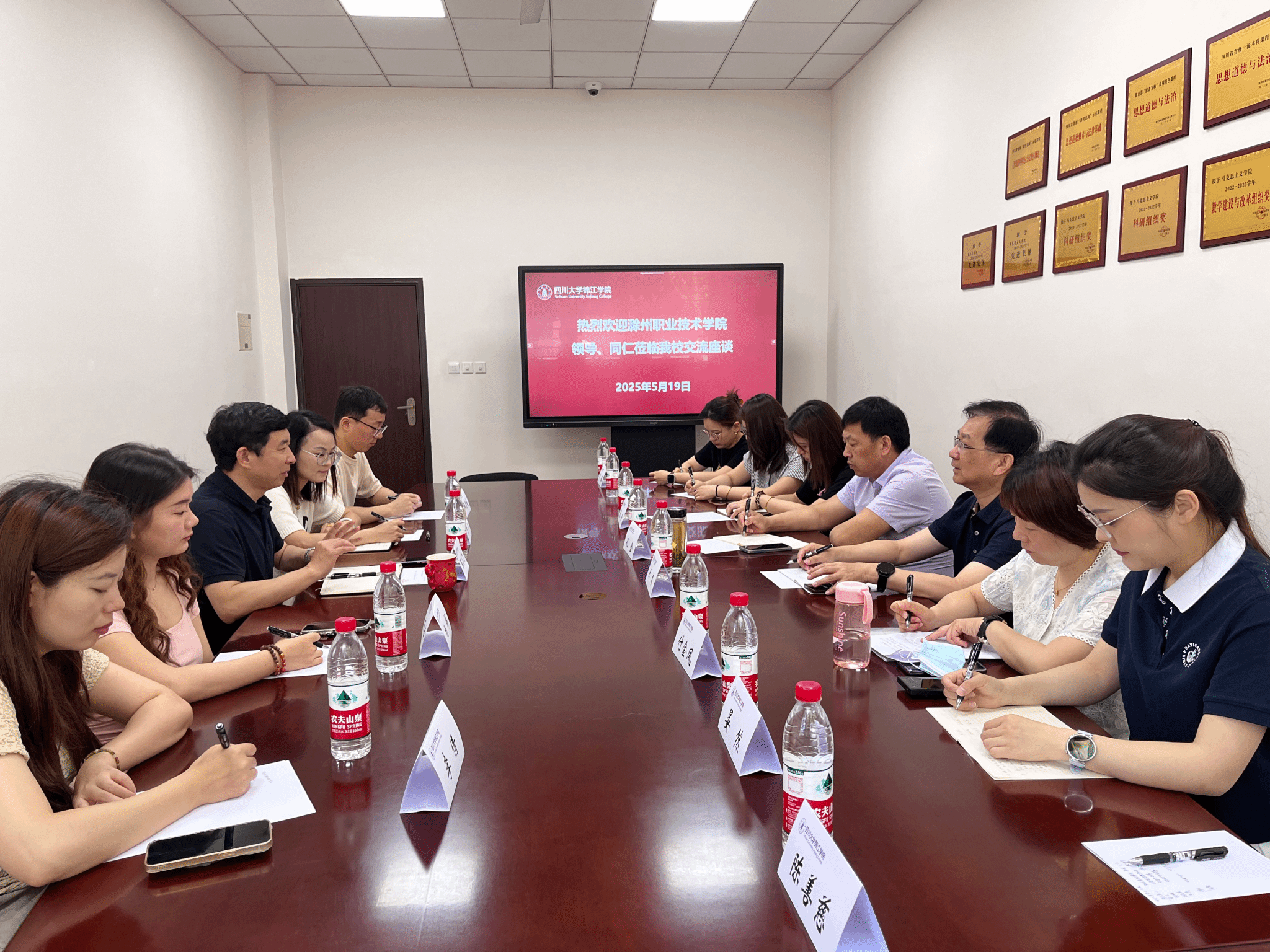 在四川大学锦江学院,马克思主义学院执行院长张小飞教授详细介绍了学院的建设情况,分享了在教学改革、科研创新、实践教学等方面的经验。双方围绕如何提升思政课教学质量、加强师资队伍建设、推进思政课实践教学改革等问题展开了深入探讨和交流。此外,考察团还参观了该校的相关教学设施和实践基地,对其在应用型人才培养上的创新举措有了更直观认识。