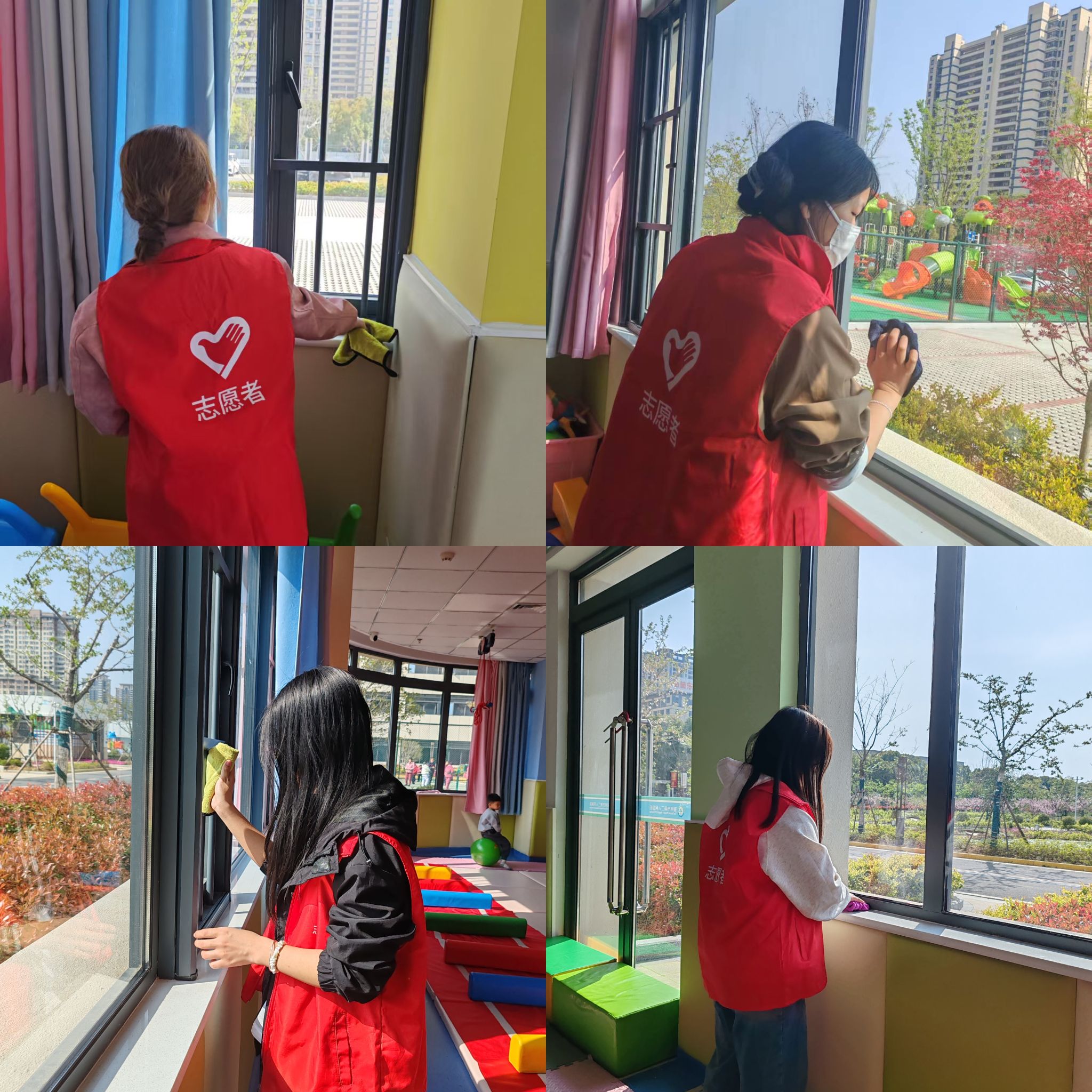 活动当日,志愿者们迅速分组行动。志愿者全力清扫,将桌椅擦得锃亮,地面一尘不染,让活动场地焕然一新。完成清洁后,他们又拿出彩笔、积木,陪孩子们画画、搭积木,耐心引导,孩子们脸上渐渐绽放出笑容,现场温馨又欢乐。