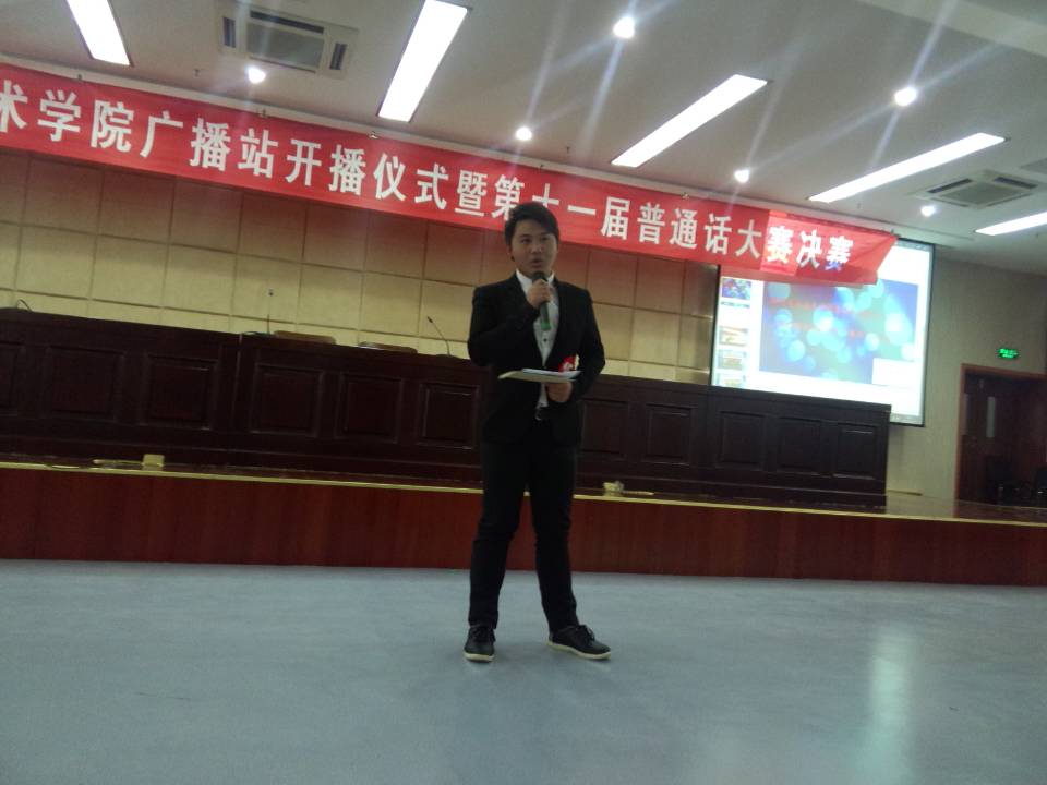 2013年11月13日下午四点,米兰app下载安装官网苹果普通话大赛决赛在综合楼大厅顺利举行,机电系杨余峰同学代表我系参加。