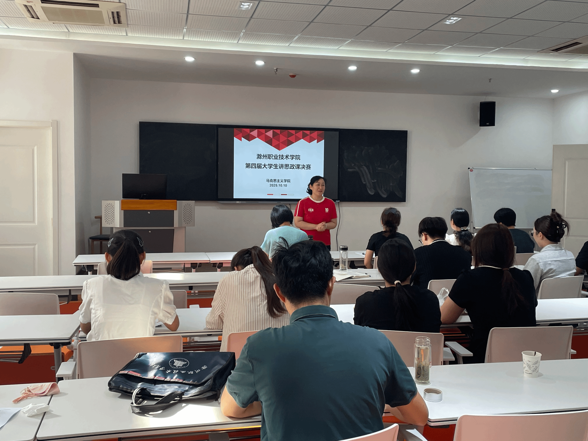 马克思主义学院通过宣传组队、初赛、复赛等环节选拔出来自不同学院的近20支团队同台竞技,以“新时代”视角把思政课讲出了“青年味”“时代感”,擦亮了高职院校青年大学生的思政课堂底色。最终12支队伍进入校级决赛。在决赛中,学生主讲人打破传统思政课的单向讲授模式,将理论知识与自身经历、社会案例深度融合。有的巧妙使用AI数字人,进行一段跨越时空的深刻对话,有的融入滁菊案例,突出滁州特色,把思政小课堂与社会大课堂贯通融合。经过激烈的角逐,评委从教学设计、理论深度、教学组织等维度综合打分,共评选出一等奖4组,二等奖8组。下一步将推选每组一等奖选手参加皖北大学生讲思政课片区赛。
