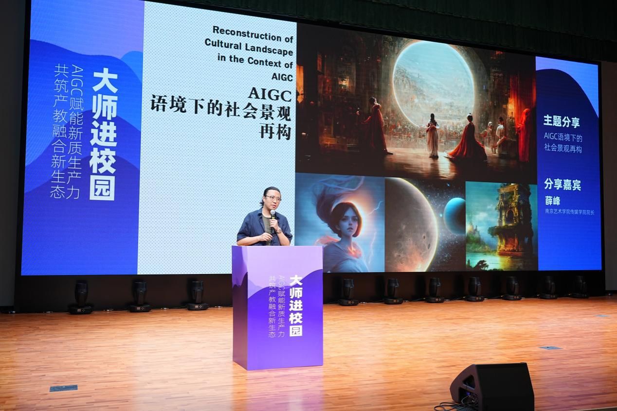 薛峰教授分享了AIGC为社会景观带来的影响,并从学术角度阐述了AIGC在院校教育与艺术创作方面的双重推动作用。