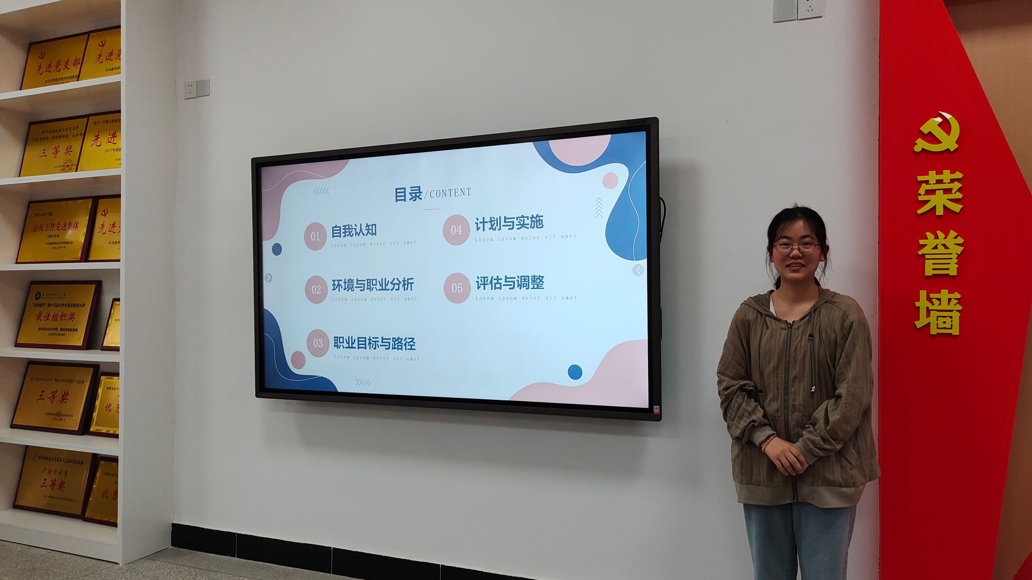 大赛伊始,瞿康宁为本次选拔赛致辞,随即大赛在主持人热情洋溢的开场词中拉开了帷幕,此次各参赛选手都是来自21、22级。现场比赛分为播放职业角色情景模拟视频、 PPT现场展示和答辩3个环节。每位参赛选手均在演讲中放飞梦想、畅谈未来,他们认真专注的眼神透漏着他们对美好未来的憧憬和希望。他们通过SWTO分析、霍兰德职业测试进行自我及就业环境剖析,找出自身优势劣势,并详细具体的制定出职业生涯规划中的短期、中期、长期目标和可行、连续、具体的实施计划。他们自信大方的演讲博得了现场观众的阵阵掌声。